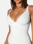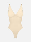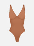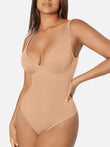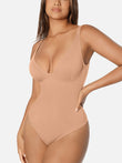 • A deep v-neckline and low-cut back styling to go with a variety of clothing.